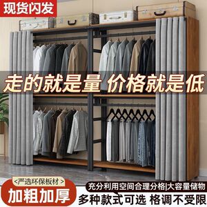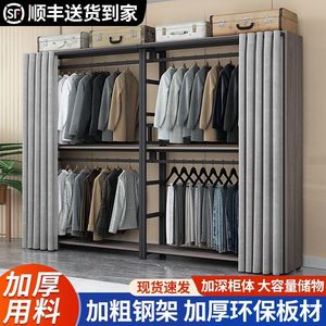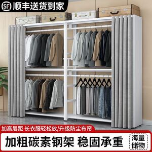 加固衣帽架简易落地衣柜卧室小户型简约衣架加粗全钢架出租房衣柜