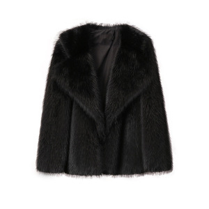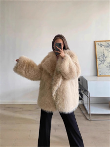欧美秋冬新款翻领皮草大衣女士人造毛夹克宽松韩版中长款外套女装