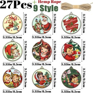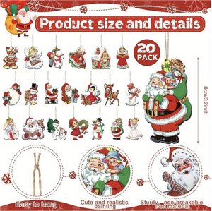 圣诞松锥麋鹿卡车雪人屋挂牌 圣诞节木质装饰带绳适用于圣诞派对