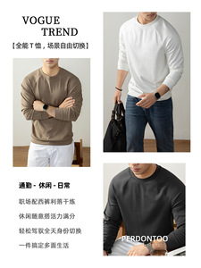 【轻奢系列】260G亲肤莫代尔棉圆领长袖T恤男高端插肩袖纯色秋衣