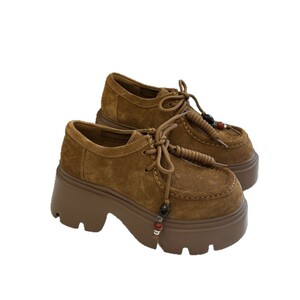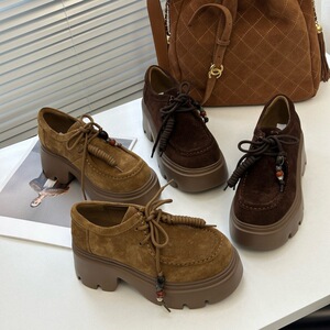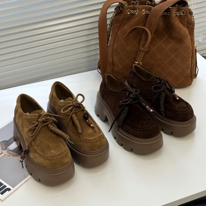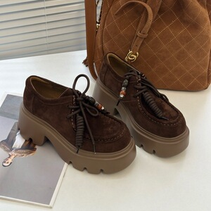 2025秋季新款松糕厚底复古风小个子袋鼠鞋增高8cm小皮鞋女单鞋潮