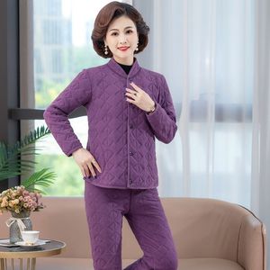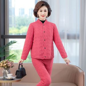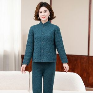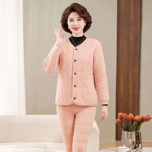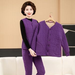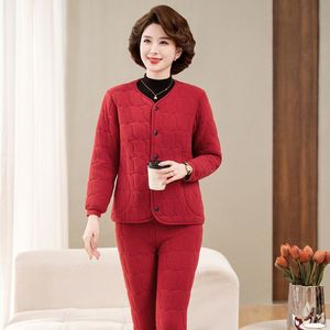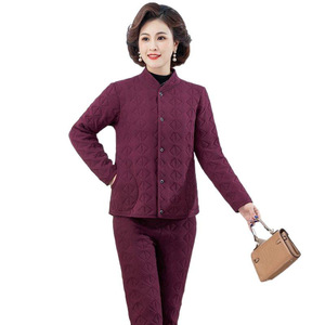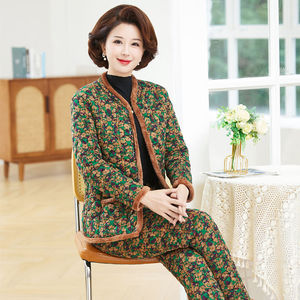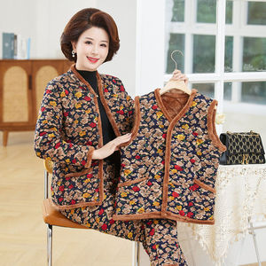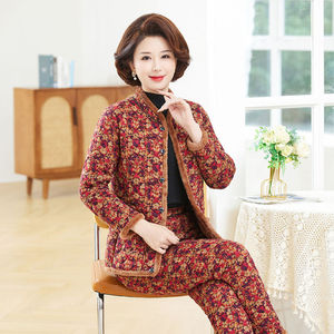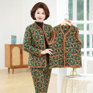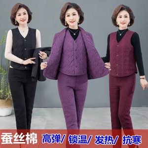 三件套保暖套装中年女装冬季新款蚕丝棉外穿高档棉服妈妈装两件套