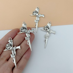 复古荆棘玫瑰十字架吊坠手链项链配饰diy锌合金饰品配件