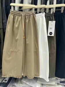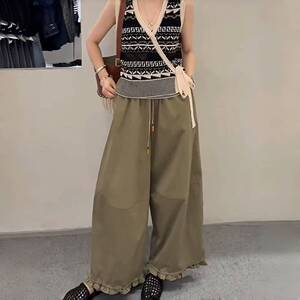 韩版复古时尚显瘦高级阔腿裤女夏款松弛慵懒宽松大摆宽松木耳花边