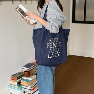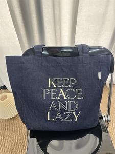 牛仔布大容量托特包女简约字母刺绣单肩包女休闲办公电脑包收纳包