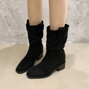堆堆靴复古小个子中筒靴2025年秋冬新款粗跟西部靴骑士靴时装靴