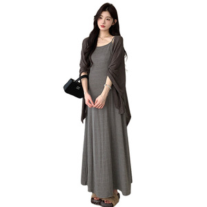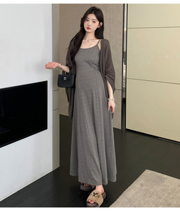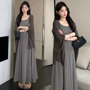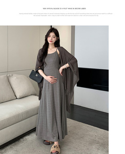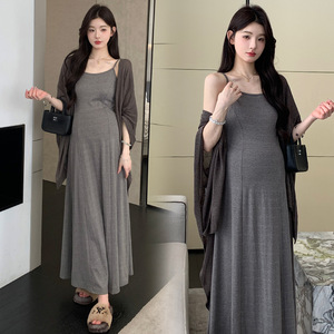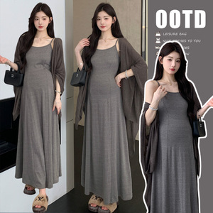2025早秋新款时尚棉质慵懒风休闲吊带连衣裙气质披肩辣妈孕妇套装