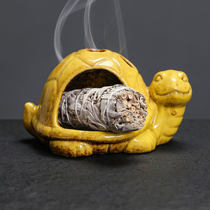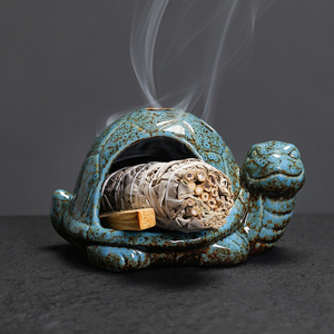 跨境陶瓷乌龟室内熏香小壁炉圣木秘鲁木鼠尾草香炉仓鼠窝家居饰品