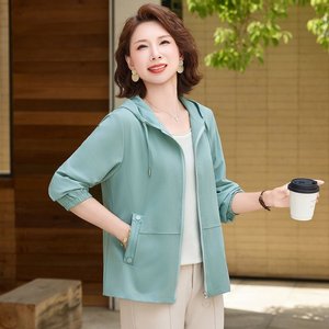 一件代发2025春秋新款时尚连帽纯色长袖外套女士薄款上衣拉链开衫