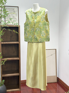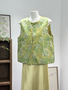 新中式国风印花双面穿马甲背心女装秋季新款高端织锦缎坎肩上衣