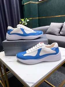 P家夏季现货蓝色真皮平跟休闲天然皮革低帮潮流鞋圆头百搭男鞋