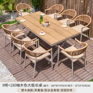 洛兰8椅+【220X90CM柚木色大板长桌】