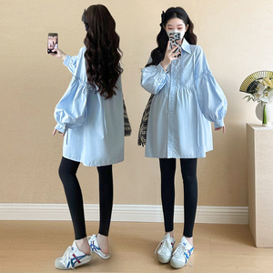 现货2025秋装新款孕妇装中长款孕妇衬衫连衣裙韩版潮妈