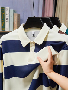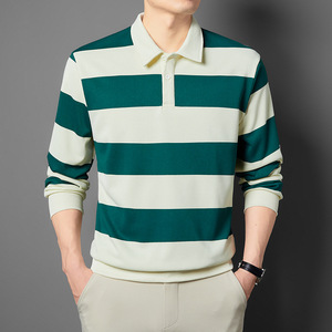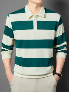 跨境外贸男士长袖拼色POLO衫2025秋季新款中年休闲百搭打底衫t恤