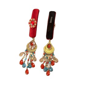 新中式红色串珠流苏发夹民族风复古精致文艺氛围感显白丝绒发饰女