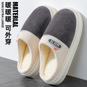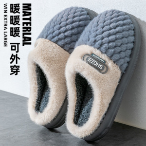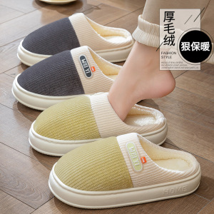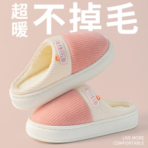 厚底毛毛拖鞋女士情侣防滑居家加绒保暖外穿棉拖鞋男工厂批发冬天