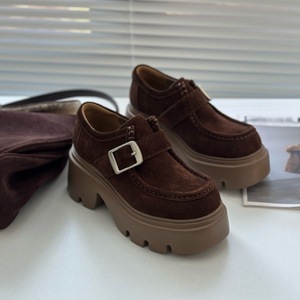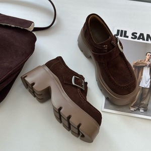 2025秋新款松糕厚底真皮小个子乐福鞋增高8cm英伦风小皮鞋女单鞋