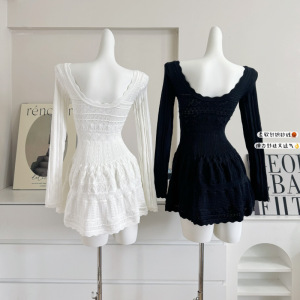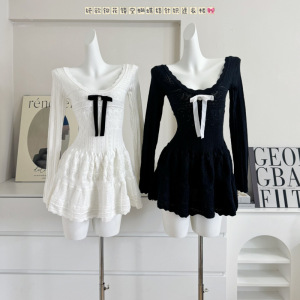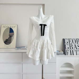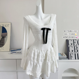 Barb Chill 千金感miu系连衣裙女白月光韩系蝴蝶结长袖针织小白裙