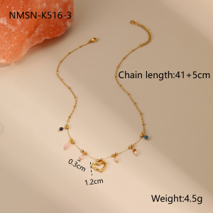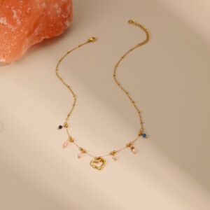 欧美跨境时尚镂空爱心形不锈钢项链设计感串珠锁骨链项饰外贸批发
