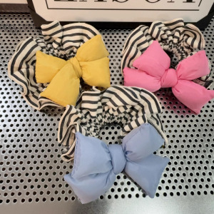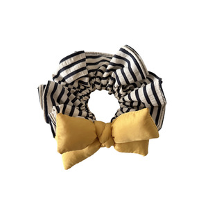 明黄色充棉蝴蝶结发圈条纹褶皱发绳韩系时尚百搭发饰2025新款头绳