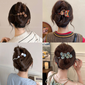 简约珍珠一字发夹扭扭夹女2025新款后脑勺高级感抓夹盘发夹子头饰