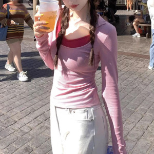 十三行撞色吊带内搭长袖薄款T恤女装2025秋新款设计感显瘦上衣