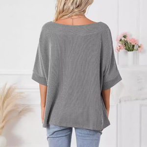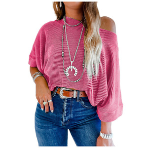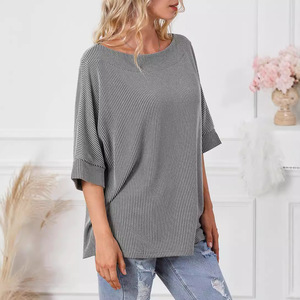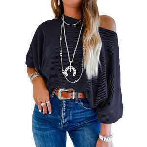 时颖欧美宽松休闲纯色蝙蝠袖上衣女秋季新款套头七分袖针织衫女