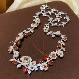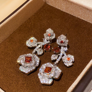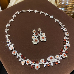 复古风锆石玫瑰花吊坠首饰套装轻奢高级感锁骨链时尚百搭饰品批发