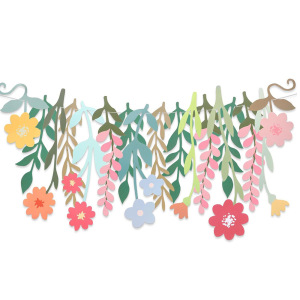 长叶子花朵拉花1套,复古花朵生日拉旗,冰激凌拉花,手工加密排须-银色