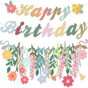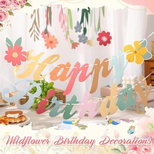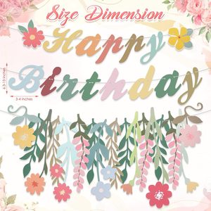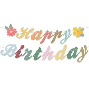 ins儿童生日快乐字母叶子花朵横幅彩旗生日派对装饰布置拉旗拉花