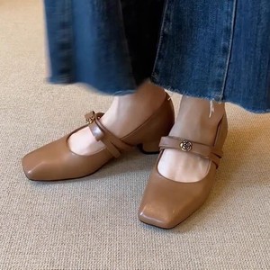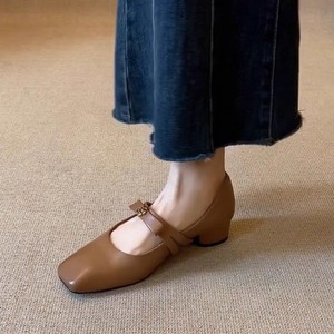 羊皮版~真皮蝴蝶结粗跟法式复古玛丽珍鞋女山茶花浅口单鞋小皮鞋