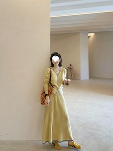 2025新款秋季一整套ootd穿搭超好看绝美黄色针织上衣半身裙两件套