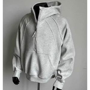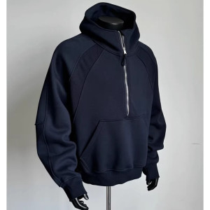 cleanfit半拉链重磅解构卫衣男款美式硬挺boxy短款拼接连帽衫外套