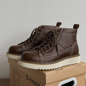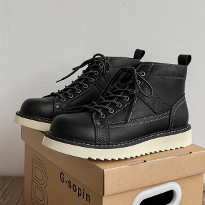 2025秋季马丁靴男漆皮韩版百搭英伦风中帮高帮皮鞋潮流复古工装靴