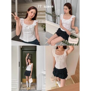 跨境贸易荷叶边法式白色无袖衬衫女夏季甜美修身衬衣温柔显瘦上衣