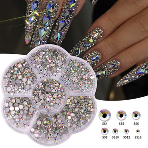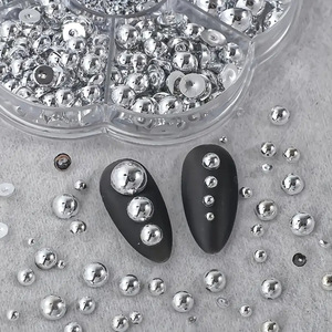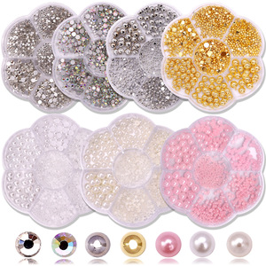 跨境爆款新品7格彩色半圆美甲饰品珍珠混大小尺寸 美甲装饰品套装