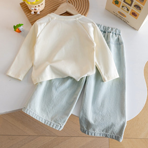 小女孩秋季韩国2025新款卡通立体兔耳上衣+爱心刺绣牛仔裤两件套