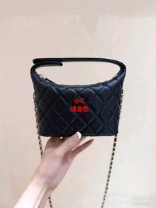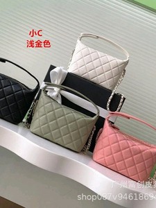 实物带LOGO新款小香风25c饭盒包鱼子酱牛皮女包菱格斜挎手拎包女