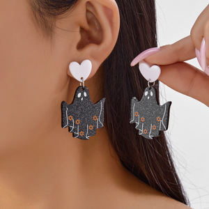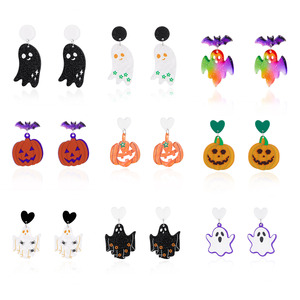 跨境新款万圣节元素耳环 搞怪卡通亚克力爱心幽灵南瓜笑脸耳环女