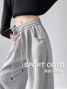 美式运动卫裤子女春夏薄2025新款高腰宽松垂感直筒休闲糯米阔腿裤