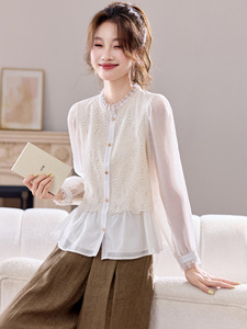 高级感假两件蕾丝衬衫女2025秋装新款时尚新气质中式国风衬衣小衫