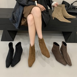 高跟尖头瘦瘦靴短靴女鞋2025年秋冬新款粗跟气质百搭法式小裸靴子