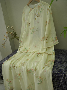2025夏季新款 国风 苎麻印花改良汉服斜襟上衣搭半身裙226