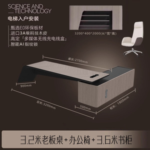 3.2米老板桌+真皮老板椅+3.6米书柜【多层板-书柜不含灯带】