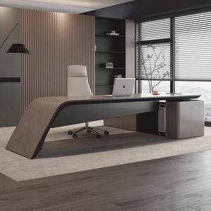 银檀色办公桌轻奢高级感办公桌简约现代总裁桌高档大气老板办公桌