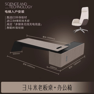 3.4米老板桌+真皮老板椅【E0级实木多层板】