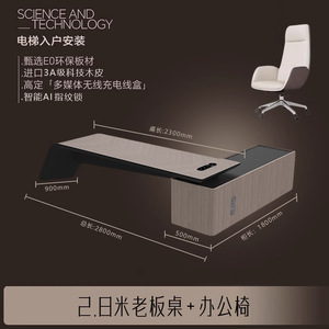 2.6米老板桌+真皮老板椅【E0级实木多层板】