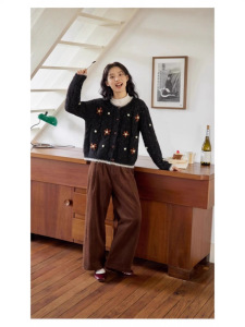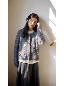2025新款针织开衫女韩系秋冬温柔风宽松显瘦手工缝制花朵毛衣外套