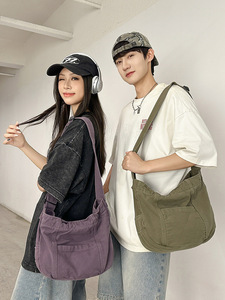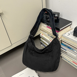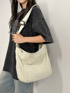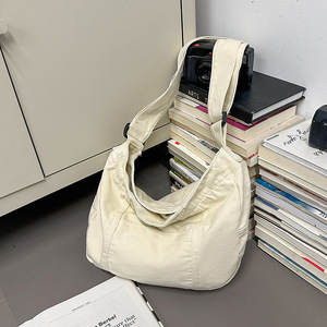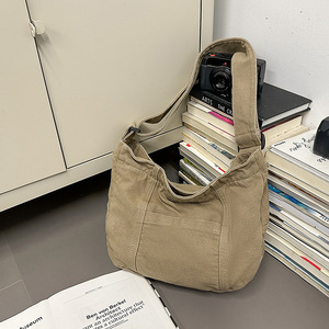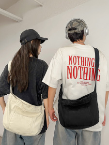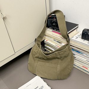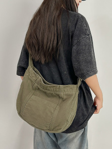 帆布包女2025新款潮时尚百搭大容量通勤单肩包纯色复古情侣斜挎包