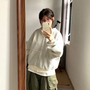 韩系慵懒开衫条纹卫衣外套女2025秋季新款chic港风宽松连帽上衣服